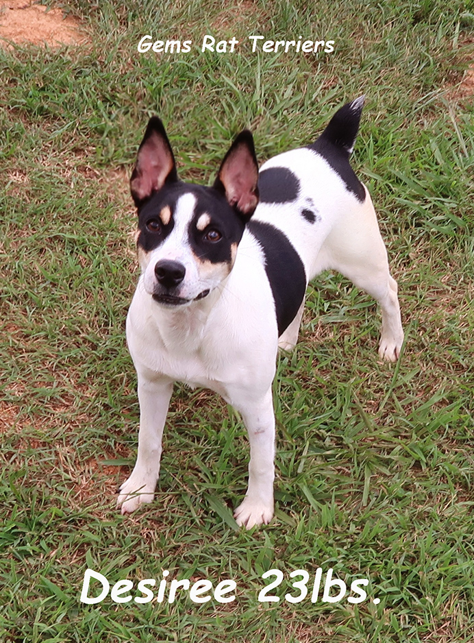 Our puppies have been taught the basic understanding of the words "No", "Come Here", "Good dog", "Do you want water?", "Do you want to eat?", "Do you want to go out?", "Wait" and "Goodnight". They are also paper trained. Some say rat terriers are a best-kept secret. They are fun loving, loyal and intelligent dogs and are easily trained. They are always ready to play, love attention and can be very funny. They can get spurts of energy we call "Zoomies", then lay around and watch TV with you. They make loving companions.